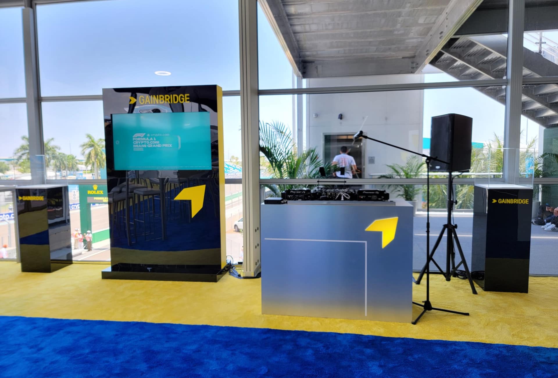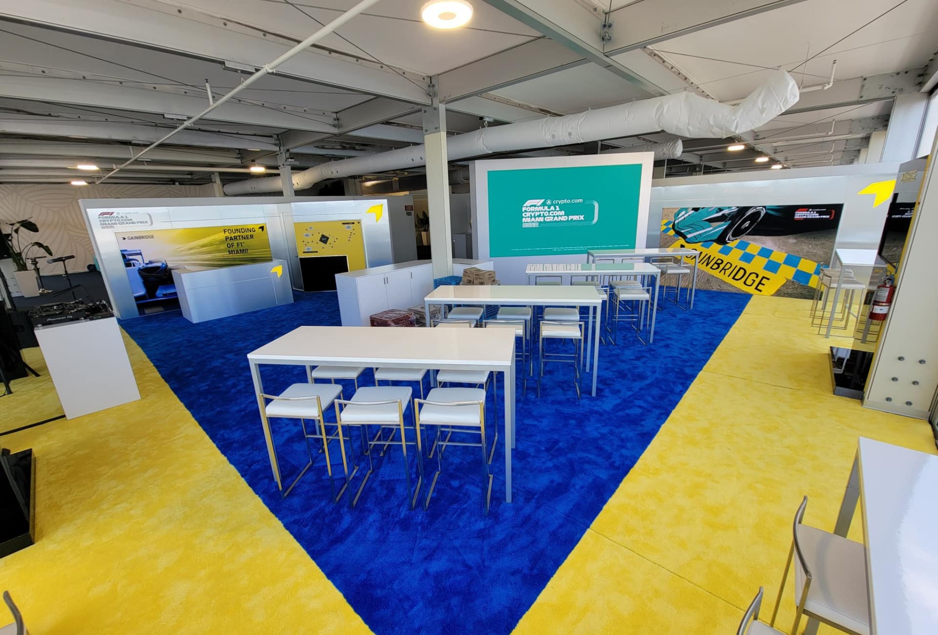 One of AMG’s proudest projects, the 2022 F1 Miami Grand Prix! We were honored enough to work with Clandestine Events & Experiences and Gainbridge to make this display a reality. We worked with our client to ensure the correct colors to match the branding while not being too overwhelming. Our in-house designer, Fred, confirmed the design details late-March with our client, and our CAD Designer, Vitor, provided the proper production drawing to facilitate the fabrication of the structures. After detailed and precise production, Team AMG provide full installation and on-site support till the dismantle of the Grand Prix.