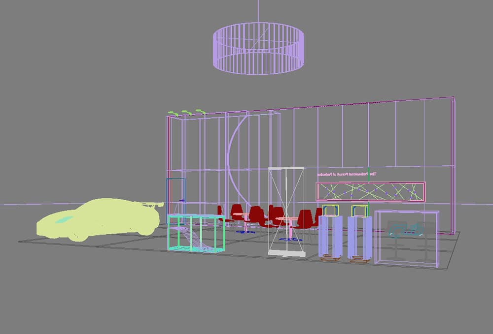 For this year’s SEMA show, Cub Elecparts decided to go with two separate exhibits in order to maximize exposure. The first exhibit, located in South Hall Lower, was designed to be simple and minimalistic. It features a large 40ft wide backwall as well as a rotating circle banner hanging above the exhibit. There’s also a show car along with a few display podiums, counters, and table sets. The design of the exhibit was intended to be straightforward and uncluttered, so we made sure to include only the things that were most necessary into the space. Cub also wanted to incorporate some sort of interactive experience into their exhibit, which is why we dedicated a portion of the backwall to display their products out in the open, encouraging attendees to touch and feel it with their own hands.