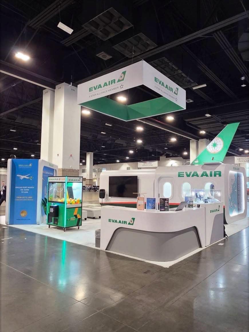 Our booth design reflected the elegance and premium travel experience EVA Air is known for, combining sleek visuals with a welcoming atmosphere.