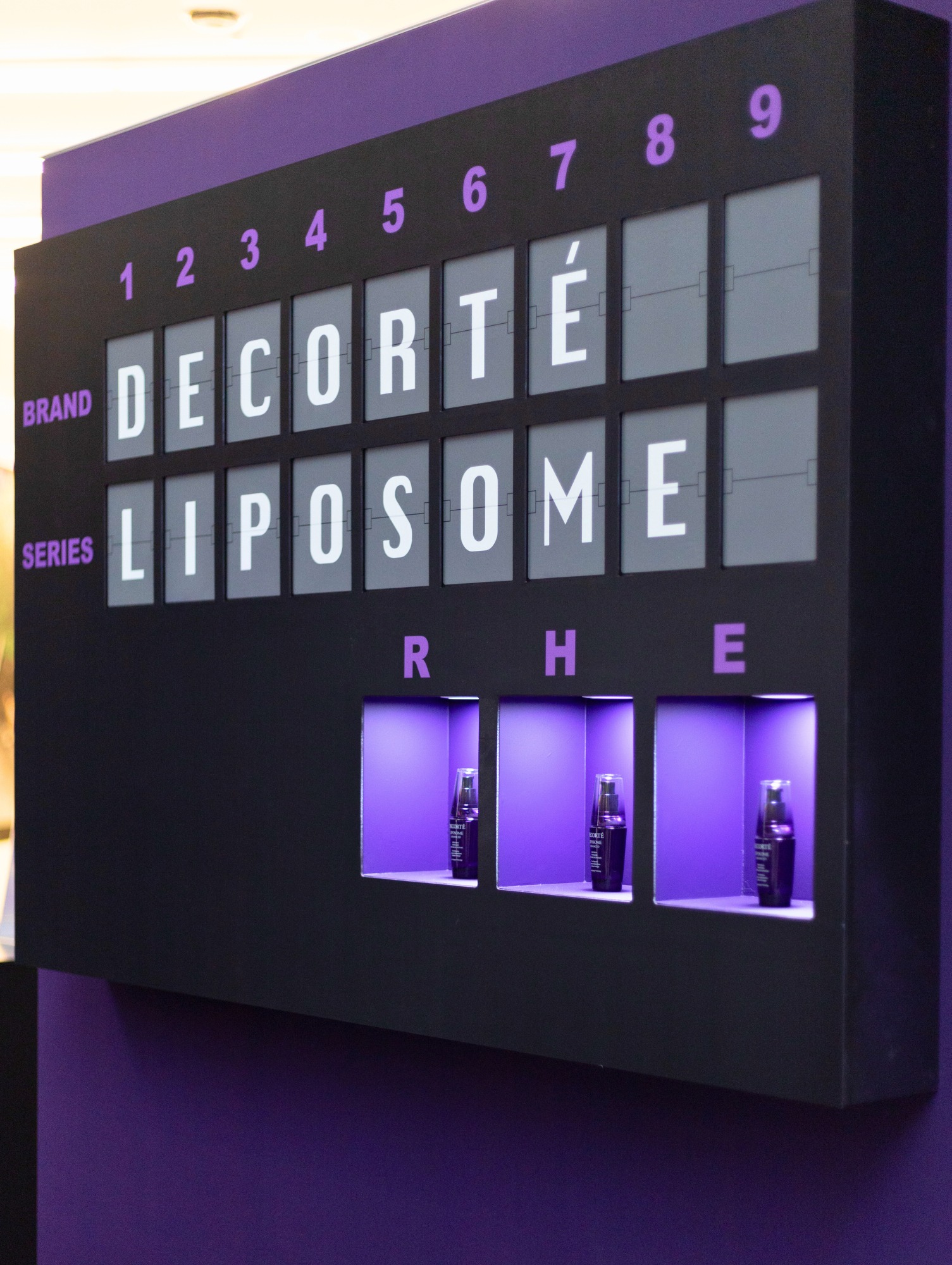 A 20x20 immersive retail pop-up at Santa Anita Mall that translated Decorte's luxury brand identity into a physical space. Deep purple branding held consistently from the carpet up — across every component, every texture, every angle. Installed on schedule, open to the public, and brand-accurate to the last detail.