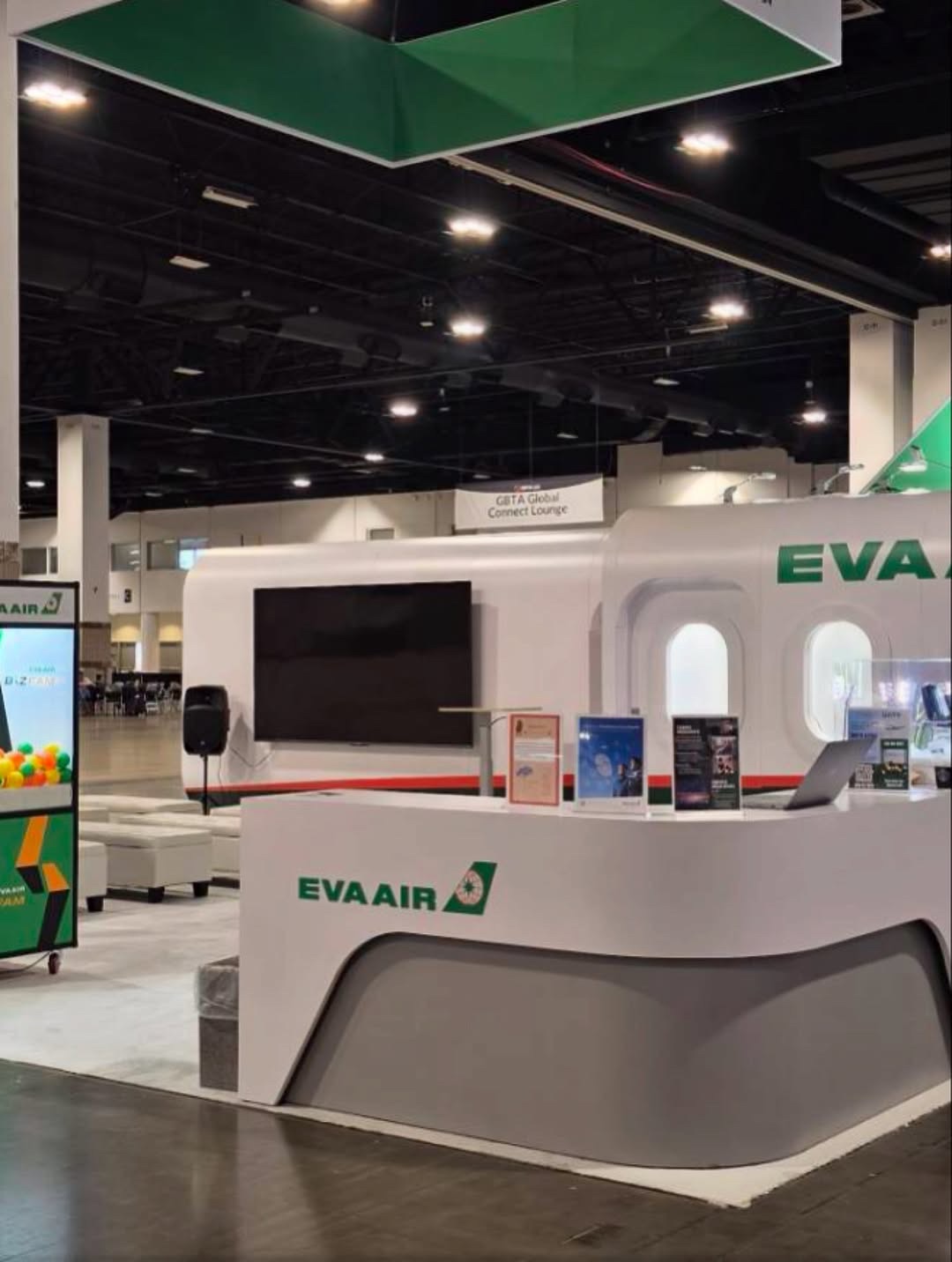 EVA Air brought their premium cabin experience to GBTA 2025 in Denver. AMG built a 20x40 custom exhibit that translated the airline's premium cabin experience into a trade show floor presence. Curved architecture, tactile finishes, and meeting zones that felt like a lounge, not a booth. Every detail reinforced the brand before a single conversation started.