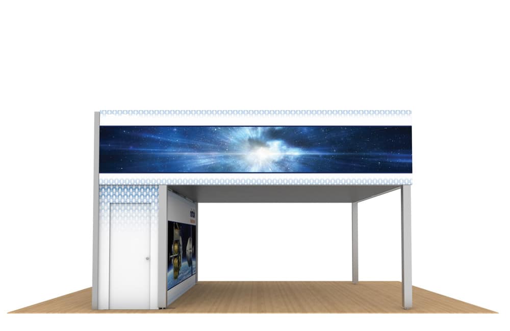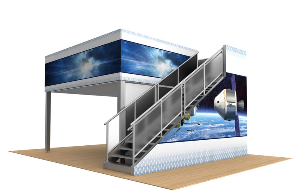 This engineer-certified exhibit system features heavy-duty aluminum construction, high-strength components and is made in the USA. Dress with purchased graphics for a soft and polished look. Choose from the complete graphic kit or select desired graphics a la carte. The graphic kit includes top deck railing cover (four sides and door), staircase and interior wall.