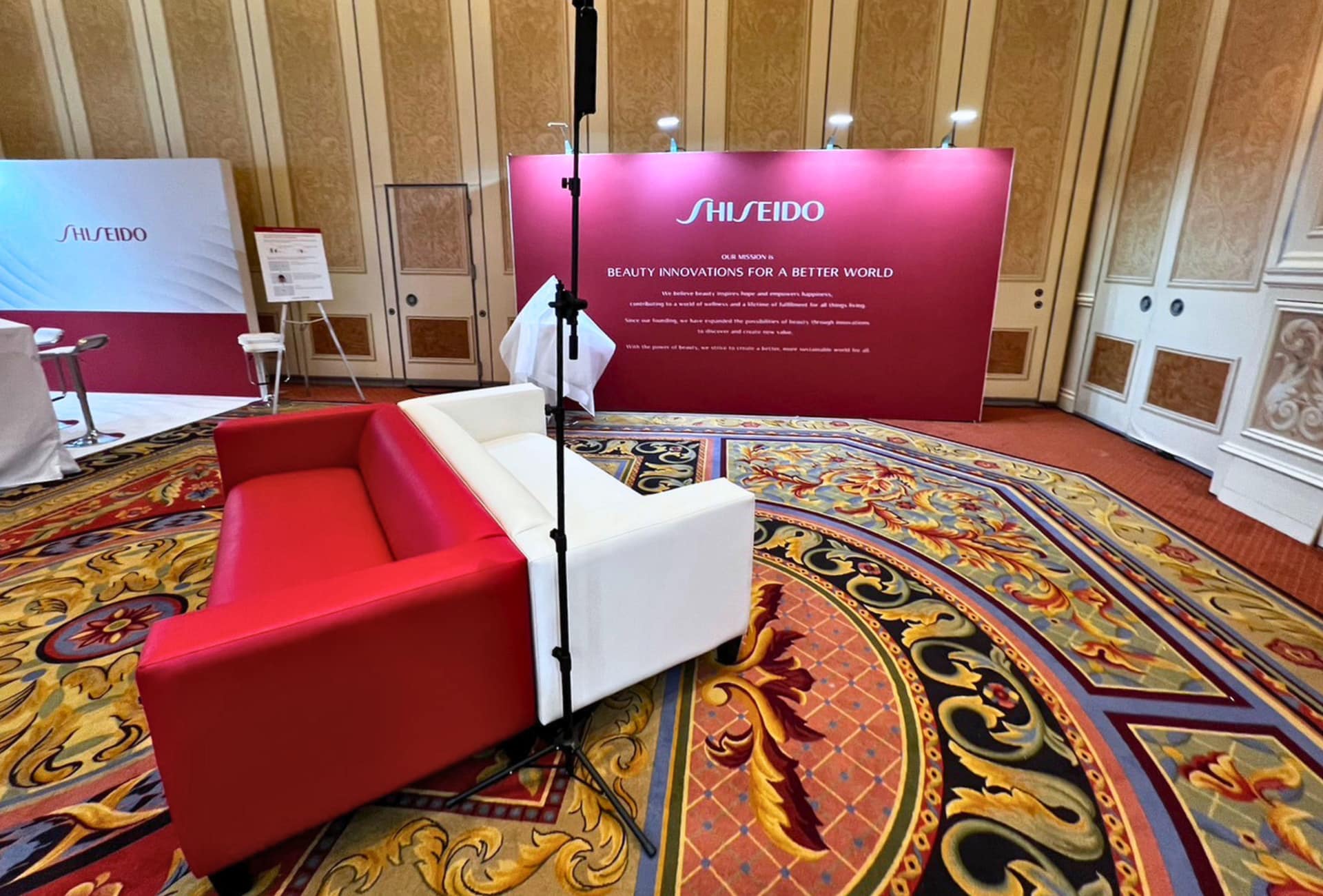 While having many booths at CES 2024, we worked with Creative Vision to complete this special showroom for Shiseido! Showroom are done differently from booths as there is usually a larger space to fill up. We complete 6 fabric backdrops and included the appropriate selections of couches to match the branding of Shiseido. In this showroom, attendees were able to see their future skin predictions through AI detection of their facial structure.