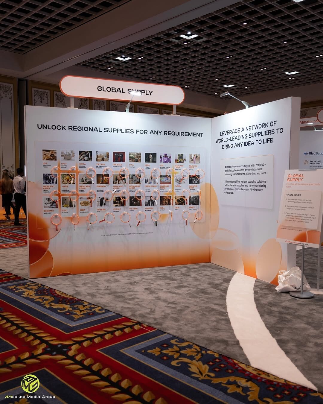 Alibaba CoCreate 2025 brought together thousands of entrepreneurs, sellers, and brand partners in Las Vegas on September 4-5. The brief was straightforward: build an environment at Paris Las Vegas Hotel and Casino that could hold a two-day summit, multiple breakout zones, product showcases, and live demos — all under one cohesive brand experience. AMG designed and delivered a 30,000 sq ft event installation that gave Alibaba's global platform a physical presence to match its scale.