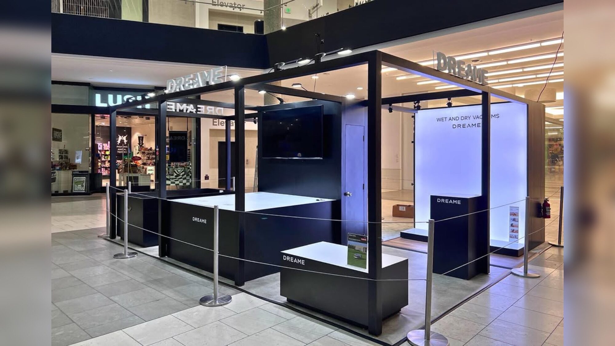 Team AMG is proud to have partnered with Dreame Tech for their exciting pop-up booth at The Shops at Santa Anita, which successfully ran through mid-November. Having worked on multiple projects at this mall, our familiarity with its operations allowed us to ensure a smooth and efficient setup. The booth's sleek black displays contrasted beautifully with the illuminated light boxes, creating an eye-catching environment where Dreame Tech's innovative products truly shone.