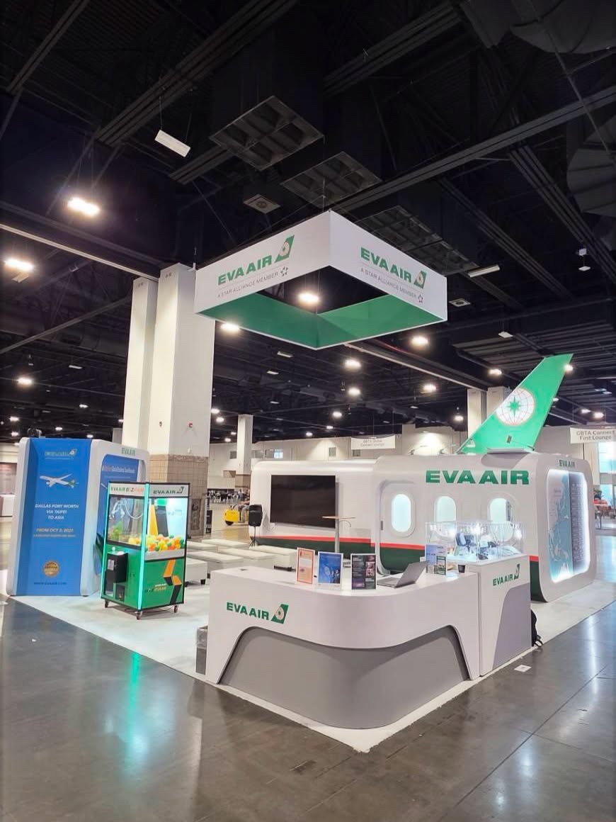 EVA Air brought their premium cabin experience to GBTA 2025 in Denver. AMG built a 20x40 custom exhibit that translated the airline's premium cabin experience into a trade show floor presence. Curved architecture, tactile finishes, and meeting zones that felt like a lounge, not a booth. Every detail reinforced the brand before a single conversation started.