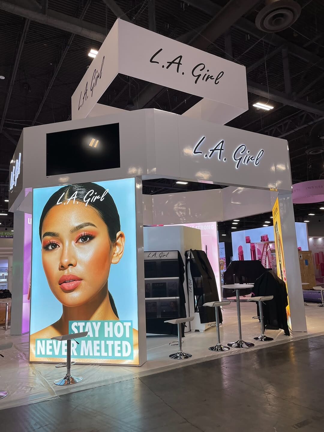 The exhibit generated consistent social media content from attendees and press, extending LA Girl's brand reach beyond the show floor.