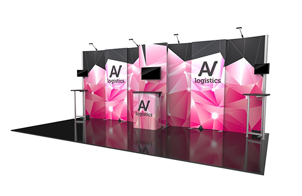 Tell us your show, dates, and brand details. We handle design, graphics, shipping, and on-site I&D.