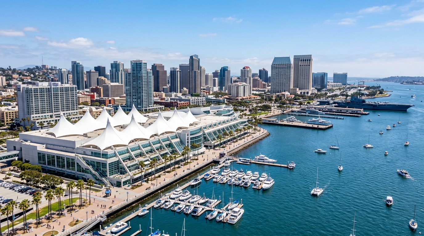 Custom exhibits and rental booths for the San Diego Convention Center. 2 hours from our La Puente facility — no freight markup, same-day emergency delivery.